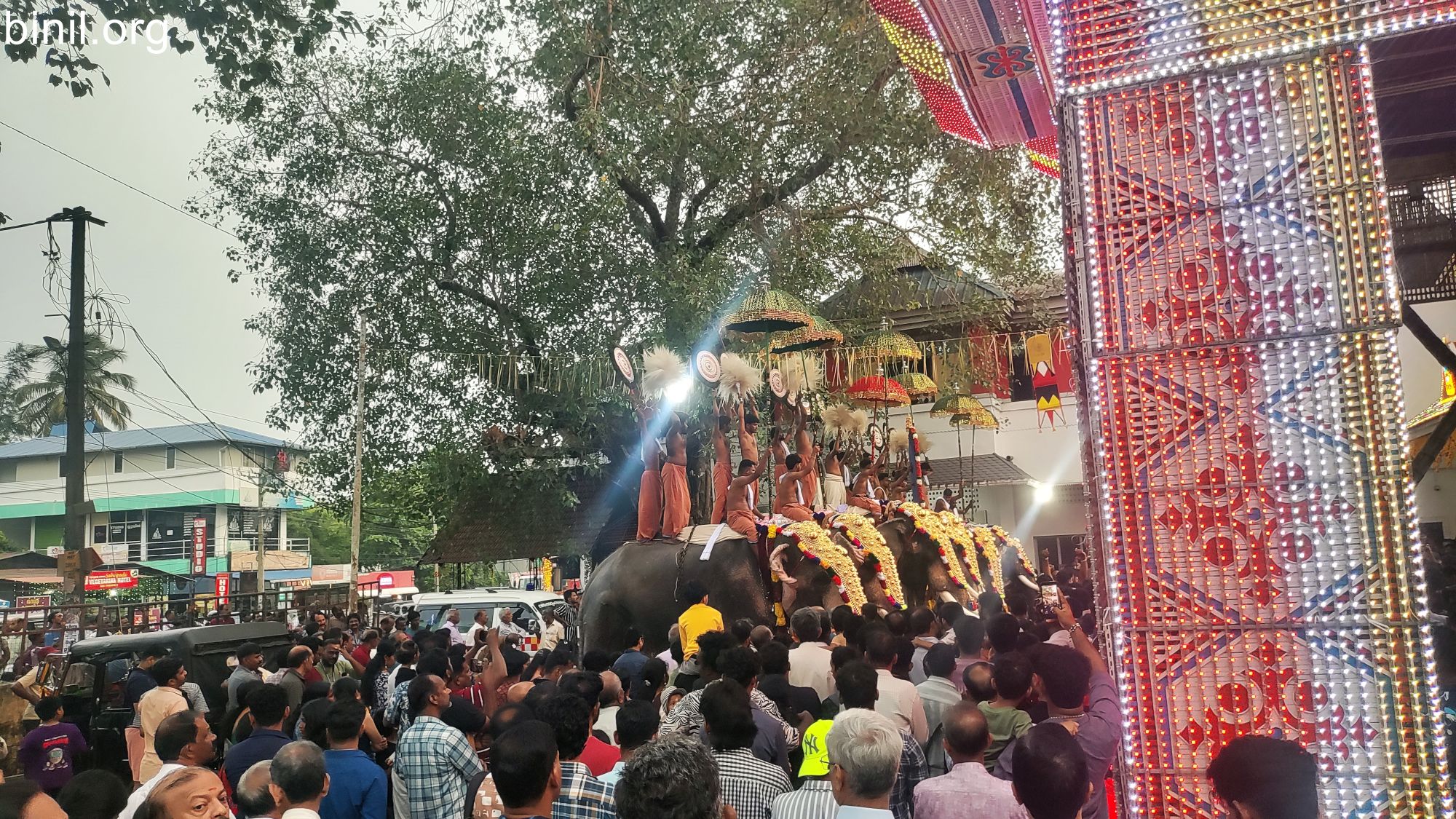 The temple is open from 5am to 11am, 5pm to 7.30pm. The annual Vela festival is observed in Kumbham month, it last 3 days – each day vela is by a different desam. First day celebration (Revathi Vela) by Thiroor/Pottore Desam. The second day’s festival (Aswathi Vela) by Kolazhy Desam. Third day’s festival (Bharani Vela) by Mulangunnathukavu Desam.